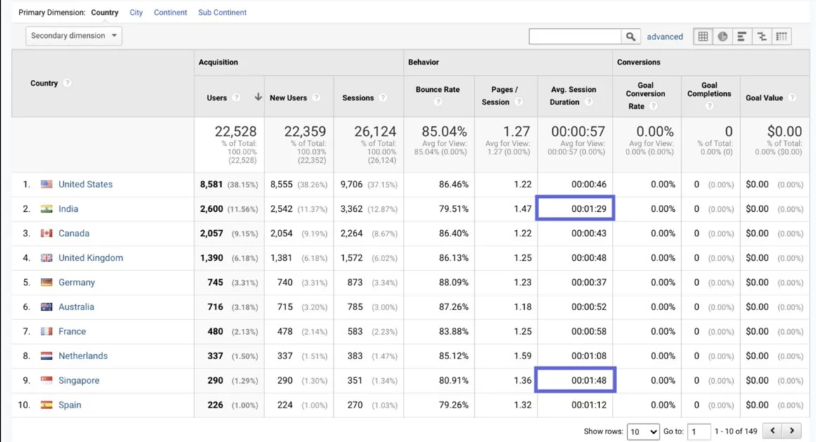 • India: 2nd best bounce rate and average session duration