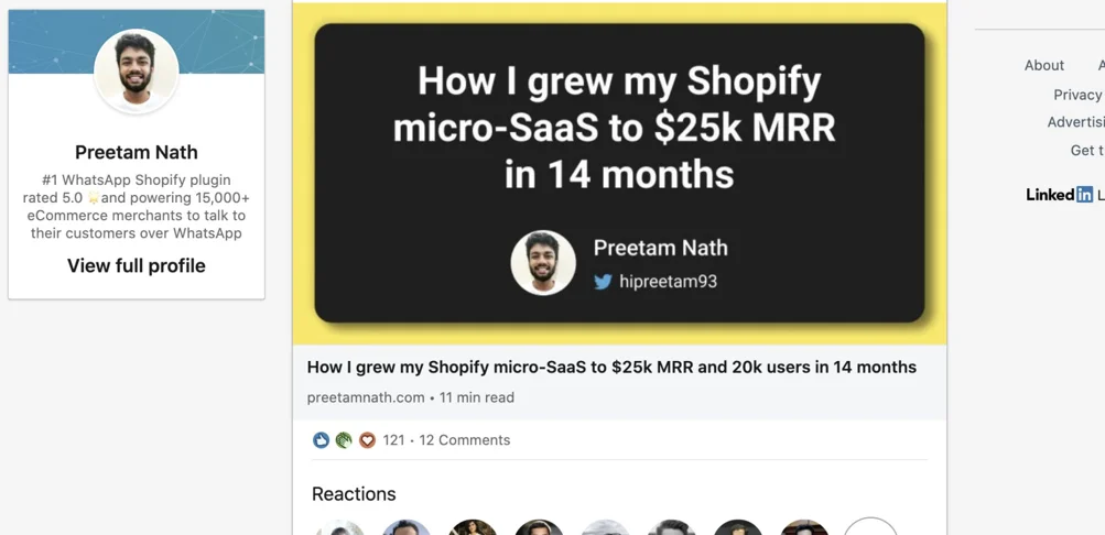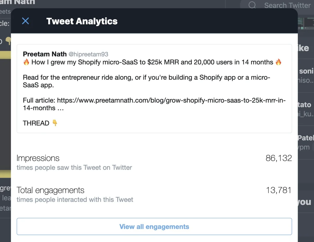 When I published the blog post about our Shopify app growth story, I expected it to reach 50 likes. Sankalp and I would quietly celebrate with a beer or something better, and call it a day.