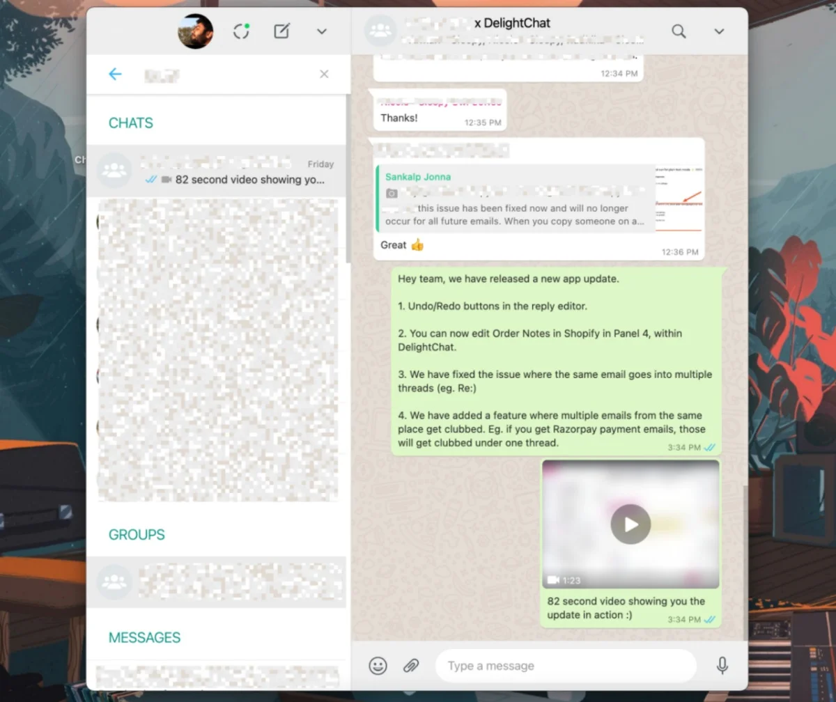 DelightChat was not being built in total isolation. We conducted multiple customer calls every week for nearly 3 months, showing the work-in-progress designs, describing the approach and functionality we are building.