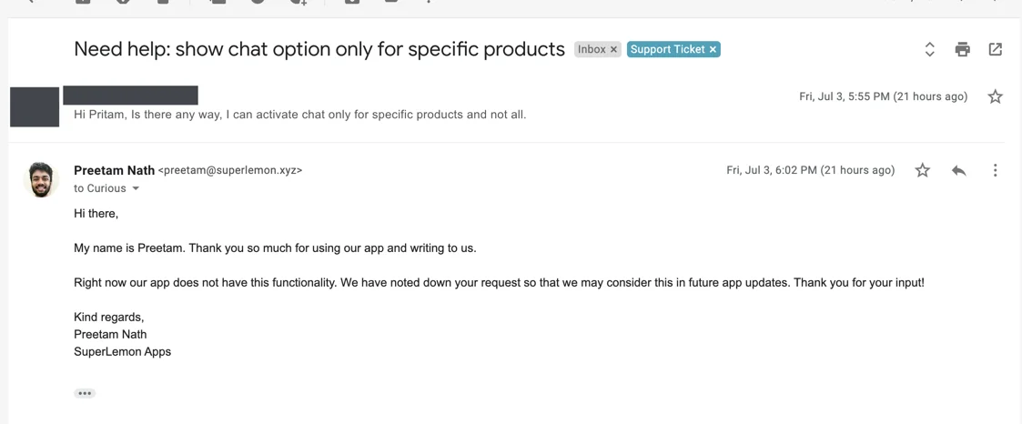 But customer support isn’t only about getting reviews. We’ve had users who prefer using our app instead of competitors because