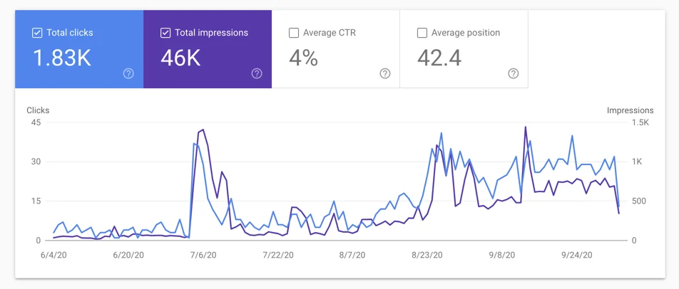 I started publishing regularly on June 4, exact 4 months ago. Back then, my blog was to get 50 impressions/day on search results. Today, the average is at 700/day. That’s a solid 14x jump.
