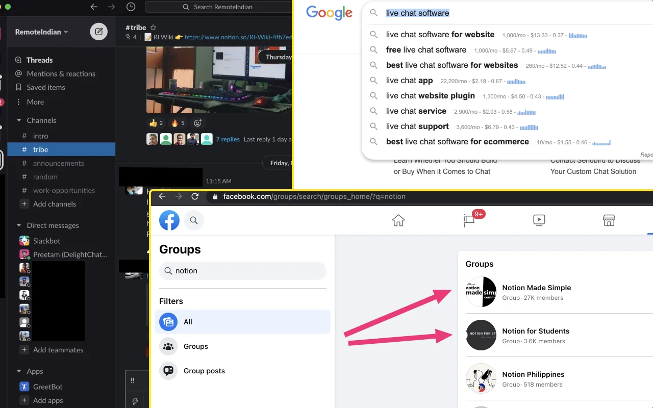 - Make a genuine post in a Facebook group or Slack community. Message people 1:1 who show an interest.