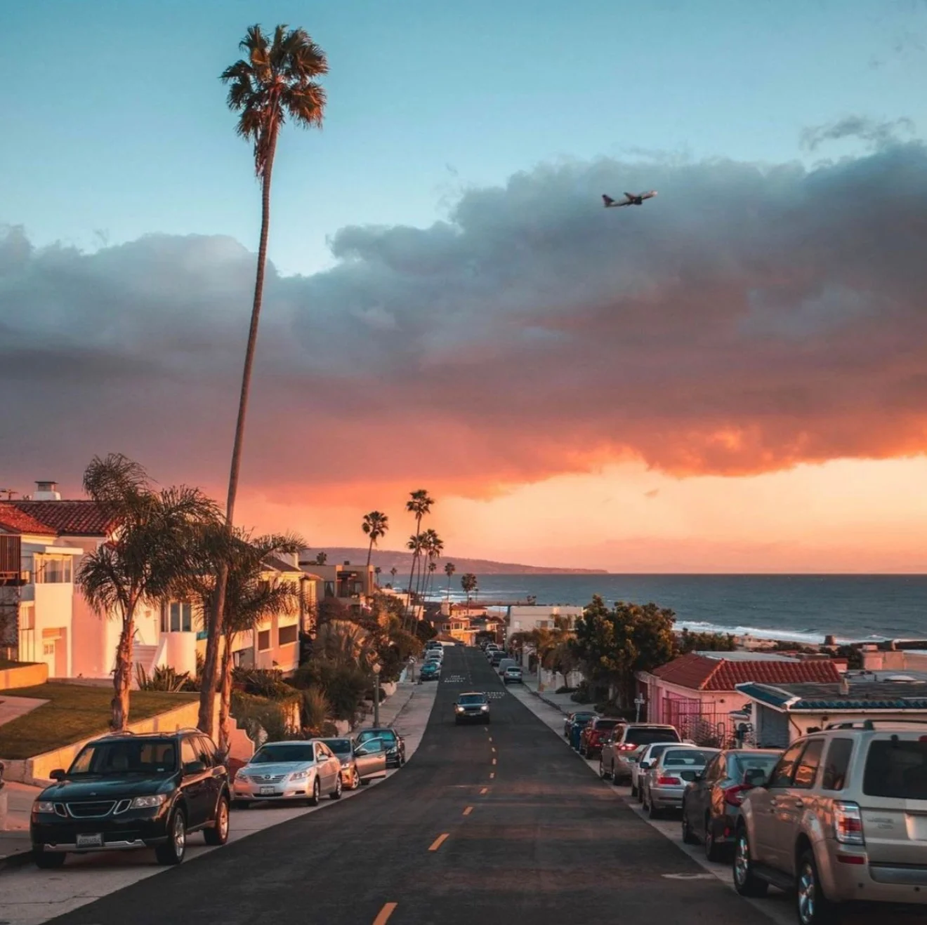 I'd like to (first learn to) skateboard down this beautiful road overlooking the ocean in Marina del Rey, California.